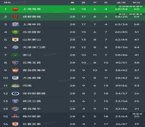 北京时间10月28日,中超第28轮的比赛前天已经全部结束,争冠区和保级区已经明朗,争冠就是海港、蓉城和申花,第28轮的比赛三队都没有拿到三分,排名没有发生变化,但是海港只领先蓉城1分,蓉城只领先申花1分。保级区深圳新鹏城和青岛海牛保级的路上都战胜了北京国安,远离降级区,梅州客家和长春亚泰深陷降级的阴霾!
