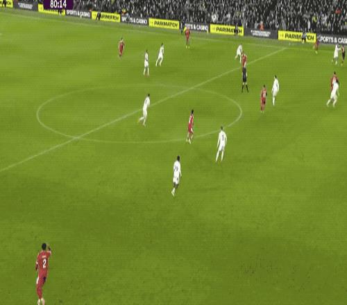 第80分钟,利物浦打出快速进攻,麦卡利斯特巧妙漏过,索博斯洛伊四两拨千斤,利物浦再次领先。
