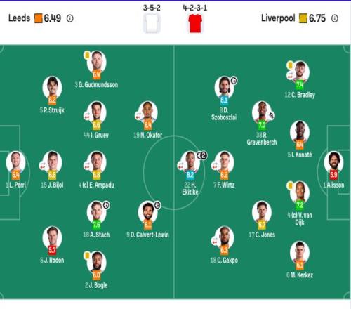 利兹联首发:1-佩利、2-杰登·博格、3-古德蒙德森、6-罗登、15-比约尔(61’29-尼翁托)、5-斯特鲁伊克、4-阿姆帕杜(87’10-皮罗)、44-古尔夫(61’22-田中碧)、18-斯塔赫、19-奥卡福(61’11-阿隆森)、9-勒温。